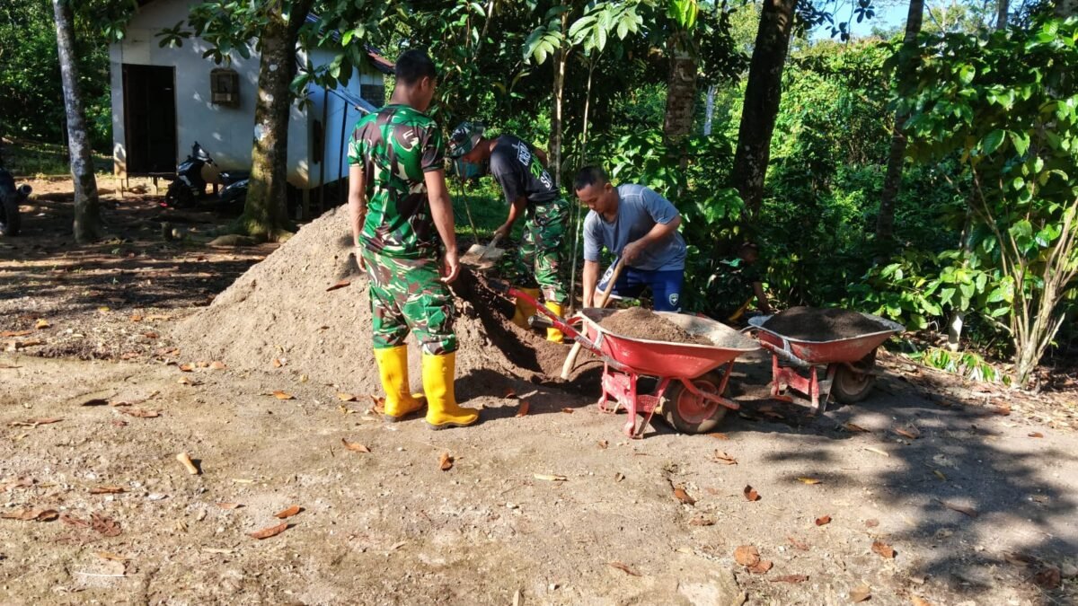 Peran Aktif Babinsa Koramil 01/Sungaimas Bantu Bangun Rumah Warga Desa Binaan