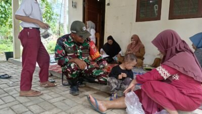ACEH BARAT — Anggota Koramil 08/Arongan Lambalek Kodim 0105/Aceh Barat turun langsung ke Desa Teupin…