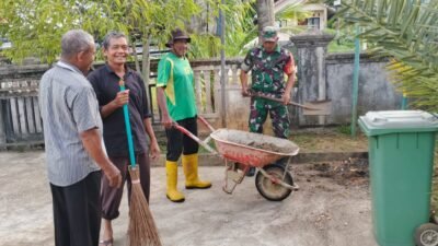 ACEH BARAT — Sertu Puguh Purnomo, Babinsa Koramil 09/Samatiga, melaksanakan kegiatan komunikasi sosial (Komsos) bersama…