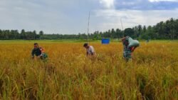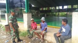 ACEH JAYA – Babinsa Koramil 03/Setia Bakti Kodim 0114/Aceh Jaya, Praka Thole, bersama warga melaksanakan kegiatan gotong royong pemasangan paving block di halaman PAUD yang berada di Desa Lhok Bot, Kecamatan Setia Bakti, Kabupaten Aceh Jaya, Minggu (21/12/2025).