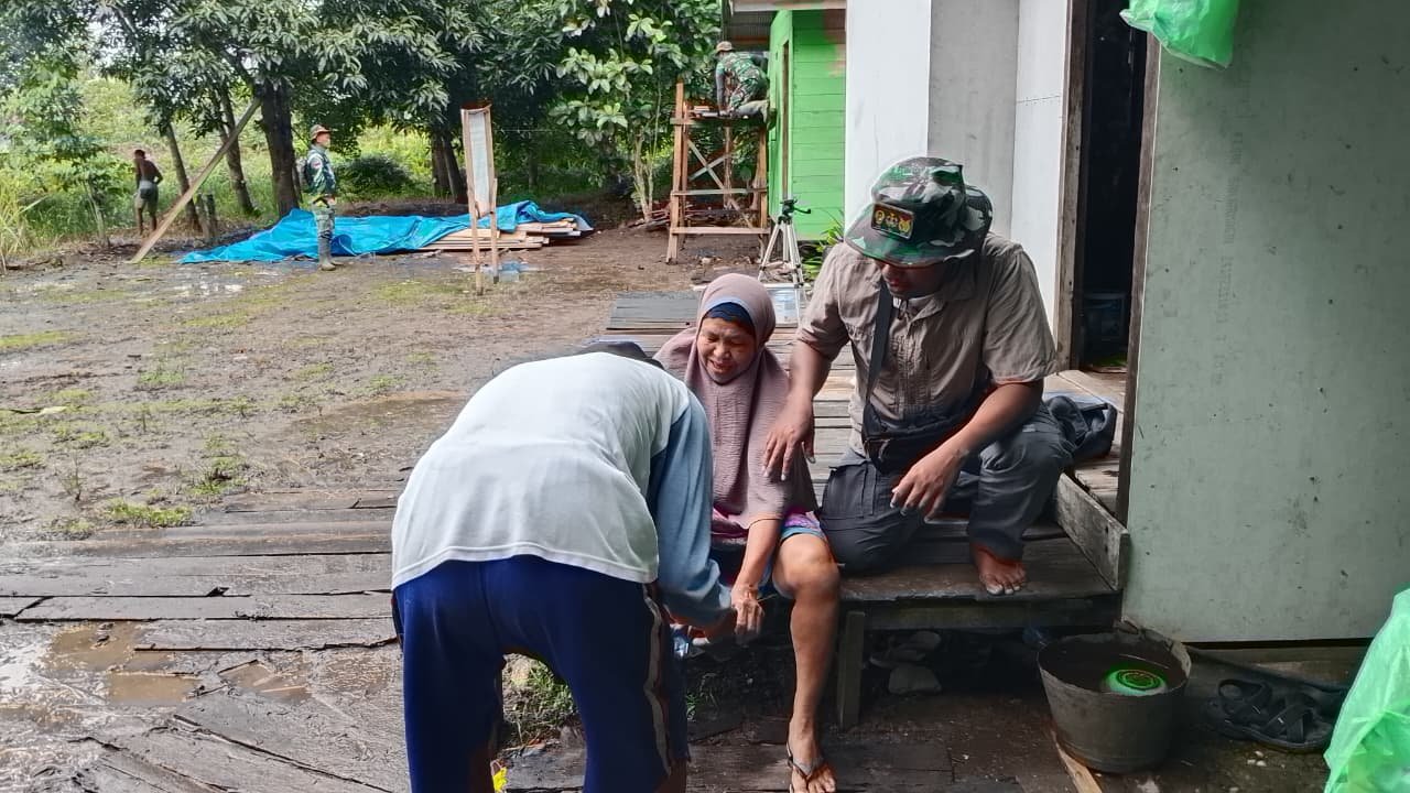BARITO KUALA – Di tengah kesibukan tugasnya sebagai Bintara Penerangan Kodim 1005/Barito Kuala, Serma Sugeng menunjukkan kepedulian yang luar biasa terhadap warga. Baru-baru ini, ia hadir mendampingi Kai Zaini dan istrinya, dua lansia di Desa Tumih, Kecamatan Wanaraya, menyaksikan proses perehaban rumah mereka yang tergolong Tidak Layak Huni.