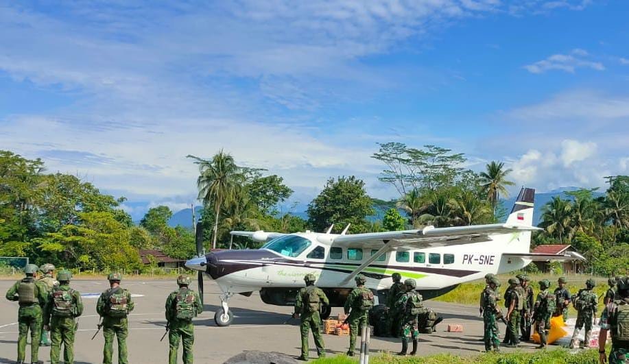 Nduga, Papua Pegunungan, 4 Februari 2026 – Brigjen TNI Patar Mospa Natanael Sitorus, Asops Kogabwilhan III, dan Letkol Inf Yudi, Pabandya Inspektorat Kogabwilhan III, tiba di Bandara Kenyam, Kabupaten Nduga, Selasa (3/2/2026), dalam rangka kunjungan kerja dan peninjauan Pos Satgas Yonif 300/BJW. Kedatangan rombongan berlangsung tertib dan lancar.