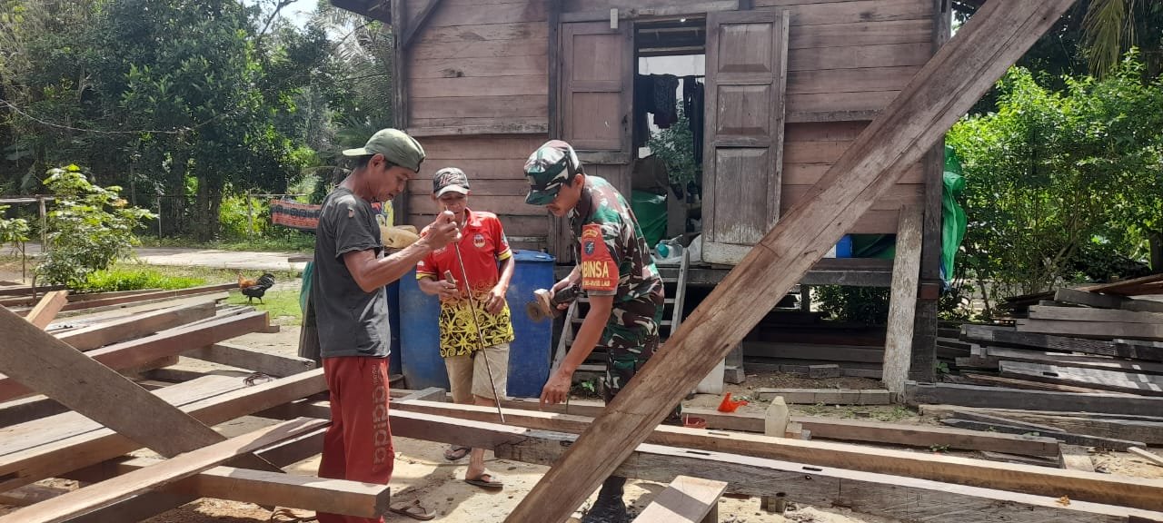 Ketapang – Wujud kepedulian dan kedekatan TNI dengan masyarakat terus ditunjukkan oleh Babinsa di wilayah binaan. Pada hari Jum’at, 16 Januari 2026, Babinsa Koramil 1203-05/Sungai Laur, Sertu Juni, melaksanakan kegiatan komunikasi sosial (Komsos) dengan membantu pendirian tiang rumah milik warga binaan.