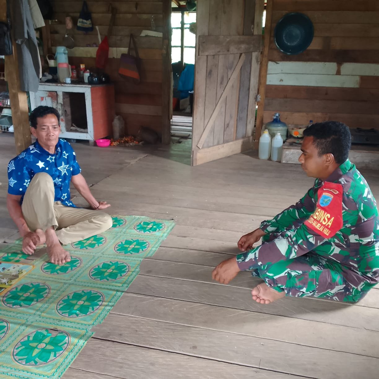Ketapang — Babinsa Koramil 1203-14/Jelai Hulu Kopda Rudini Otnial Sunir Tanu melaksanakan kegiatan anjangsana di rumah Bapak Silus, warga Desa Kusik Batu Lapu, Kecamatan Jelai Hulu, Kabupaten Ketapang, pada Sabtu, 17 Januari 2026.