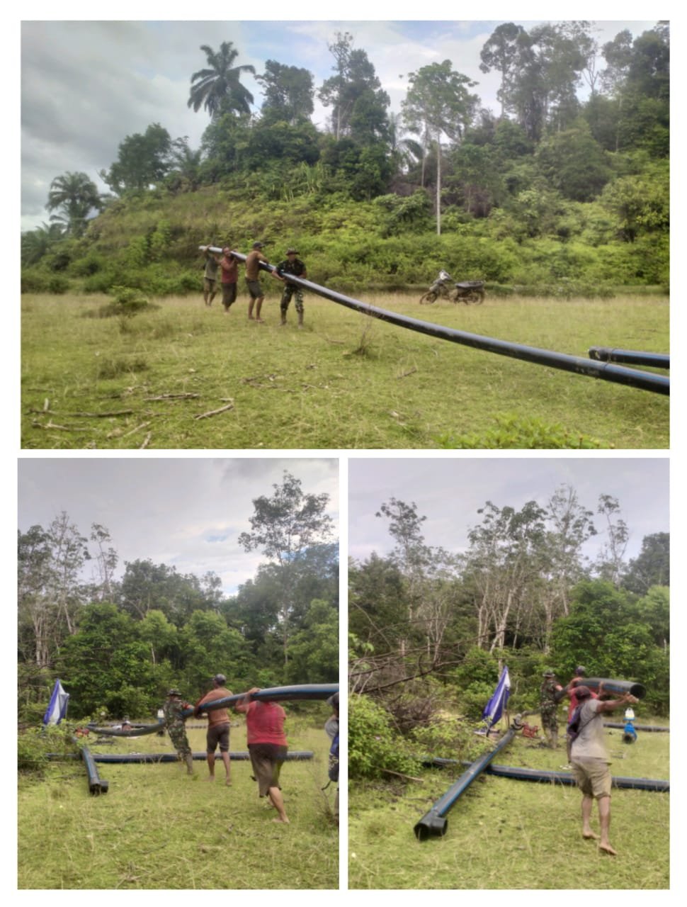 Dalam prosesnya, Sertu Ruswandi bersama warga bergotong royong mengangkat dan menyusun pipa sesuai jalur yang telah direncanakan. Ia menegaskan bahwa semangat kebersamaan harus terus dipelihara karena kerja sama dapat mempercepat penyelesaian pekerjaan serta mempermudah penanganan kendala di lapangan.