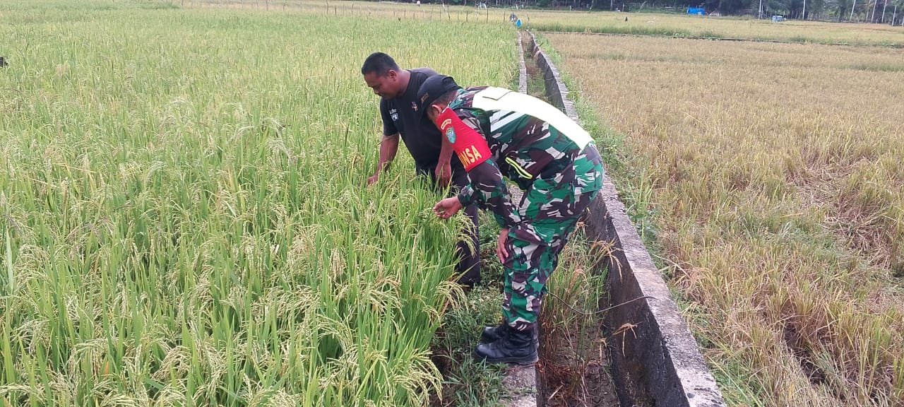 Kegiatan pengecekan ini dipimpin oleh Serda Andhi bersama petani setempat memeriksa kondisi tanaman padi, mulai dari kadar air, warna bulir padi, hingga tingkat kematangan. Dalam kesempatan ini, Babinsa juga memberikan arahan agar petani melakukan panen pada waktu yang tepat untuk menghindari kerusakan hasil panen dan memastikan produktivitas maksimal.