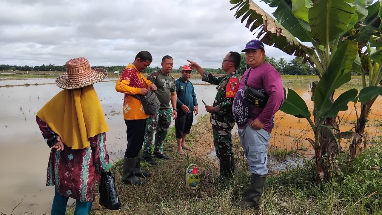 TAPIN — Babinsa Koramil 1010-03/Tapin Selatan (Tapsel) Kodim 1010/Tapin Serma Mariyoto bersama Kepala BPP Tapsel, para Penyuluh Pertanian Lapangan (PPL), serta perwakilan kelompok tani (Poktan) melaksanakan kegiatan survei lahan optimalisasi lahan (oplah) di wilayah Kecamatan Tapsel, Jum’at (21/11).