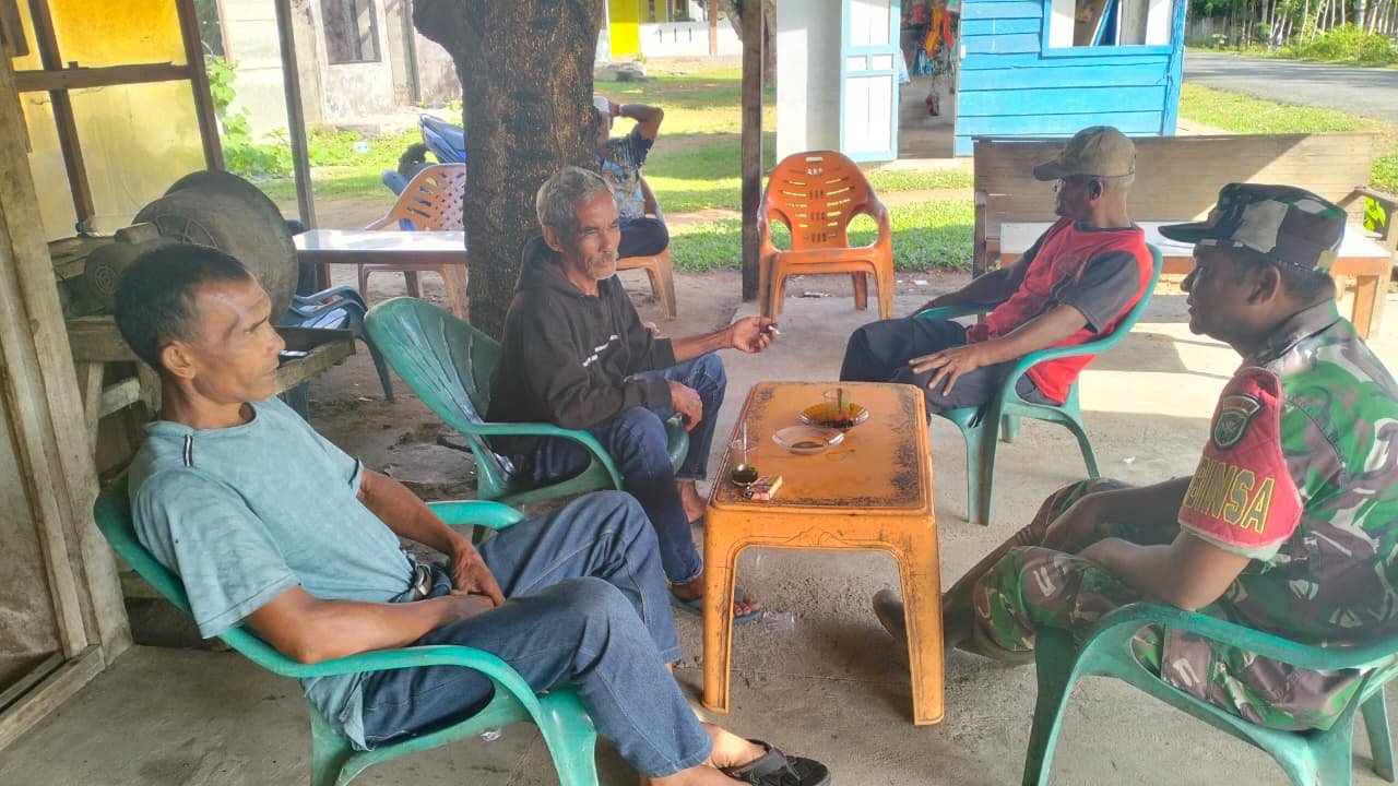 ACEH JAYA – Babinsa Posramil Darul Hikmah Kodim 0114/Aceh Jaya, Serda Syamsuar, melaksanakan kegiatan Komunikasi Sosial (Komsos) bersama tokoh masyarakat di Desa Gampong Baroe P, Kecamatan Darul Hikmah, Kabupaten Aceh Jaya, Selasa (04/11/2025).