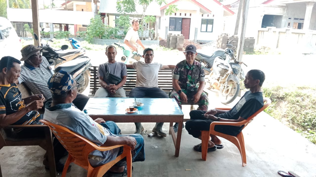 ACEH JAYA — Babinsa Posramil Darul Hikmah Kodim 0114/Aceh Jaya, Sertu Rinto Saputro, melaksanakan komunikasi sosial bersama aparatur gampong dan para petani di Desa Pajar, Kecamatan Darul Hikmah, Minggu (15/02/2026).