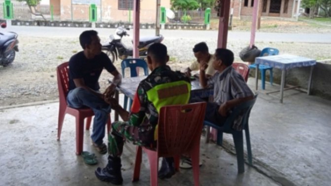 ACEH BARAT – Ciptakan kedekatan dengan warga binaan, Babinsa Koramil 11/WT Kodim 0105/Abar, Sertu Mukhlis, melaksanakan Komsos dengan masyarakat di Desa Blang Makmur, Kecamatan Woyla Timur, Kabupaten Aceh Barat, Selasa (23/09/2025).