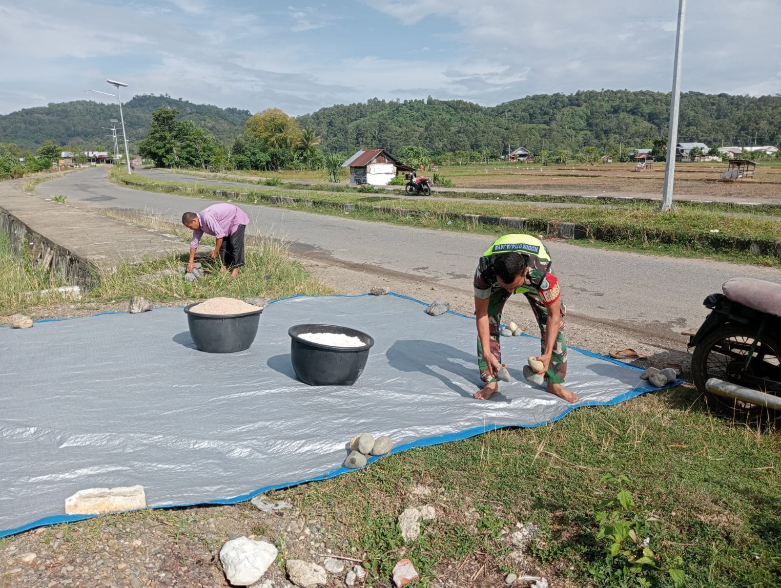 ACEH JAYA – Aktivitas pengolahan kelapa terlihat di Desa Pasar Lamno, Kecamatan Jaya, Kabupaten Aceh Jaya, Minggu (08/03/2026). Babinsa Koramil 01/Jaya Kodim 0114/Aceh Jaya, Sertu Yulizar, turut membantu warga menjemur kelapa parut hingga kering.