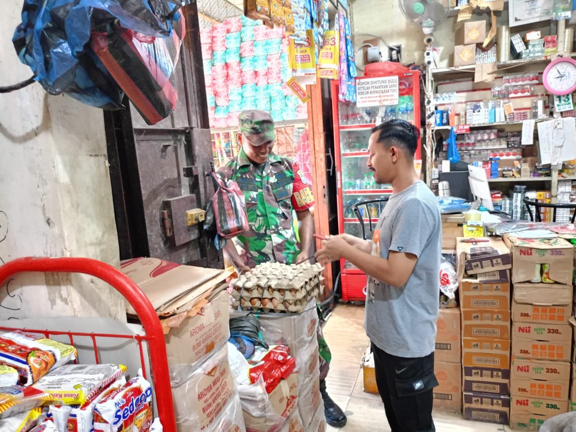 ACEH JAYA – Babinsa Koramil 01/Jaya Kodim 0114/Aceh Jaya melaksanakan kegiatan pengecekan harga bahan pokok di pasar tradisional wilayah Kecamatan Jaya, Kabupaten Aceh Jaya, Kamis (9/10/2025).