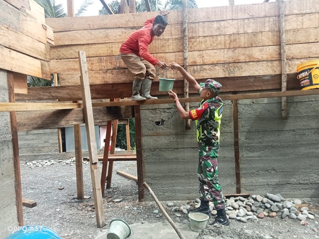 <p><strong>ACEH BARAT &#8211;</strong> Dalam rangka mempercepat pembangunan rumah warga, Babinsa Koramil 01/Sungaimas Kodim 0105/Abar, Serda M. Irwandi, turut membantu warga desa dengan terlibat langsung dalam proses pengadukan semen untuk pengecoran dinding rumah milik salah satu warga di Desa Kajeng, Kecamatan Sungaimas, Kabupaten Aceh Barat, Sabtu (15/11/2025).</p>