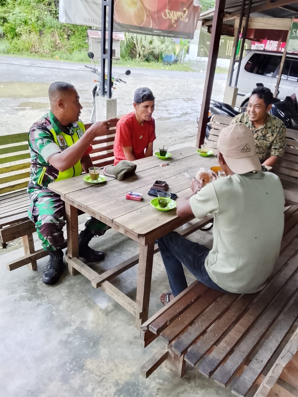 <p>Dalam suasana hangat dan penuh kekeluargaan, Serda Yuslianto menyambangi salah satu warung kopi di desa binaannya. Percakapan yang berlangsung tidak hanya membahas tentang keamanan dan ketertiban, tetapi juga perbaikan lingkungan serta aspek sosial dan budaya yang menjadi bagian penting dalam kehidupan masyarakat.</p>