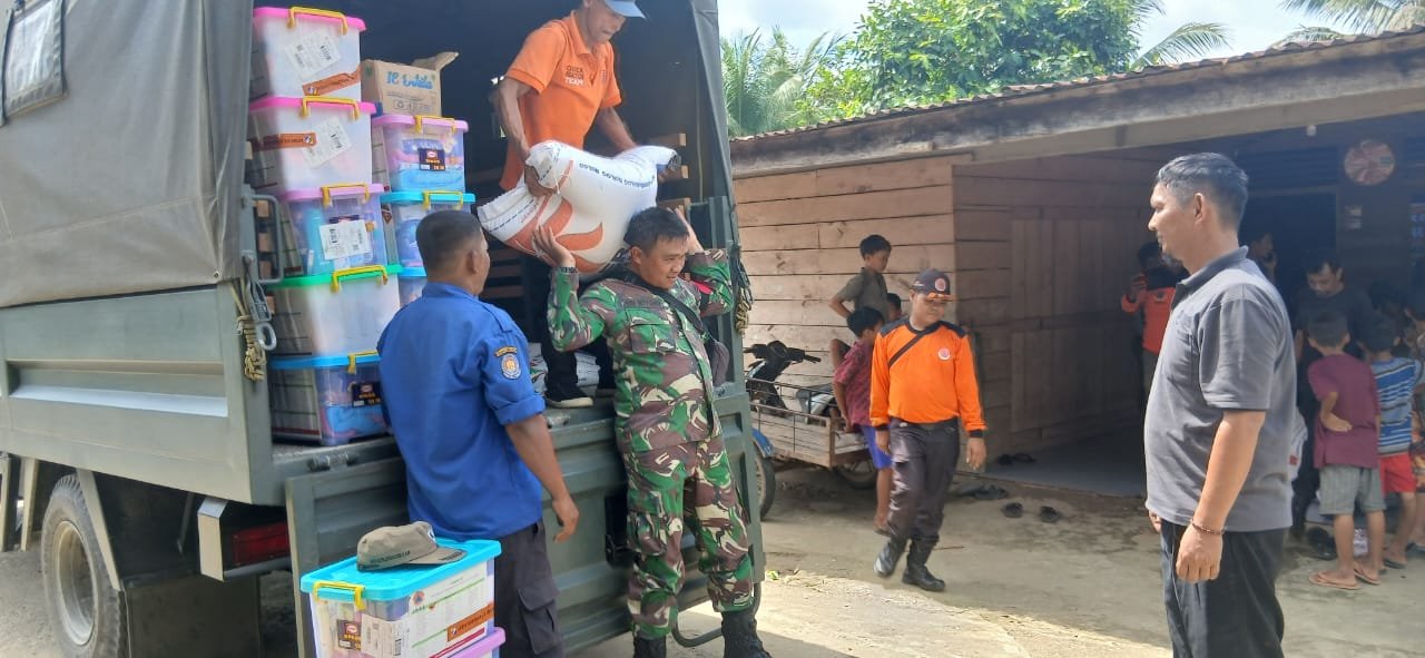 Babinsa Koramil 02/Rundeng Bawah Korem 012/TU Kawal Penyaluran Bantuan ke Warga Terdampak Banjir