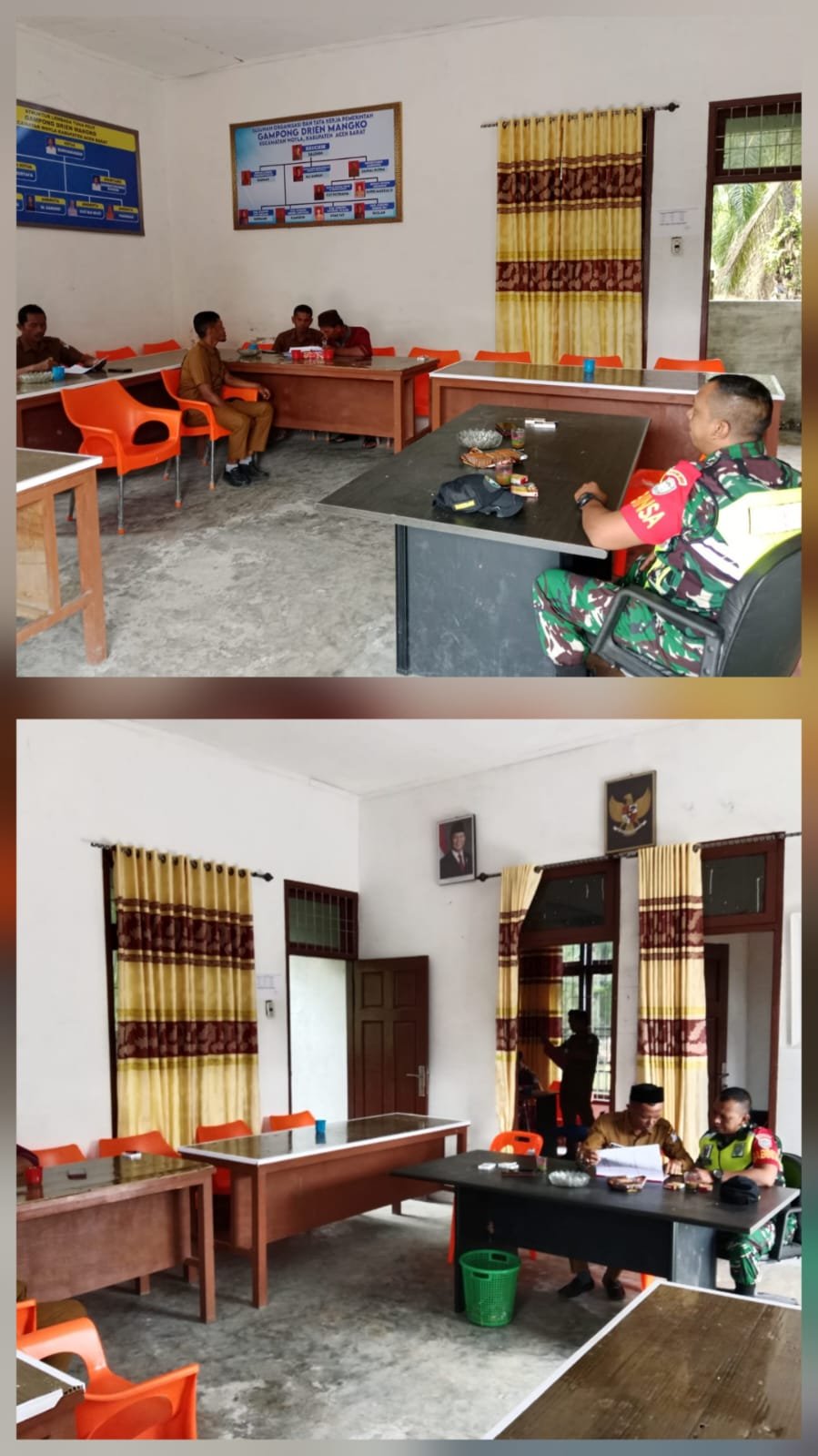 ACEH BARAT – Babinsa Koramil 02/Woyla Kodim 0105/Abar, Serda Suherman, melaksanakan kegiatan rutin yang merupakan salah satu tugas pokoknya, yakni berinteraksi secara langsung dengan Sekretaris Lurah dan perangkat Desa Drien Mangko, Kecamatan Woyla, Kabupaten Aceh Barat, Senin (29/12/2025).