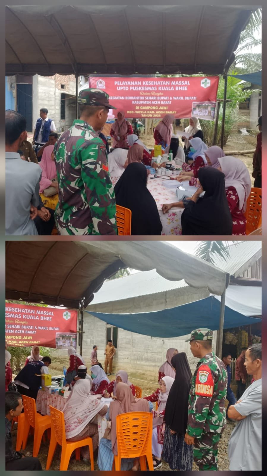 ACEH BARAT – Babinsa Koramil 02/Woyla Kodim 0105/Abar, Koptu M. Fadli, melaksanakan pendampingan pengobatan gratis di Desa Jawi, Kecamatan Woyla, Kabupaten Aceh Barat, Jumat (30/01/2026).
