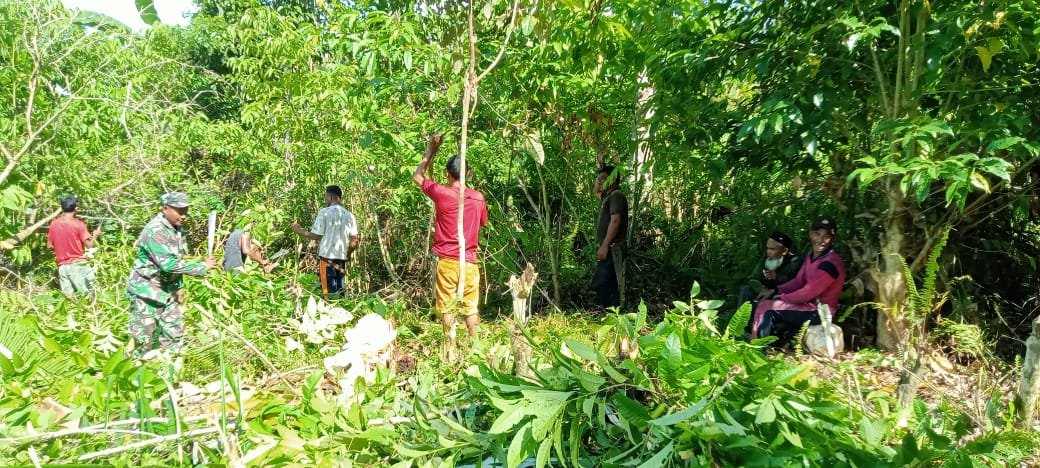 HALMAHERA SELATAN – Babinsa bersama warga masyarakat melaksanakan kegiatan kerja bakti sosial membersihkan jalan dan parit serta membersihkan halaman di lingkungan.