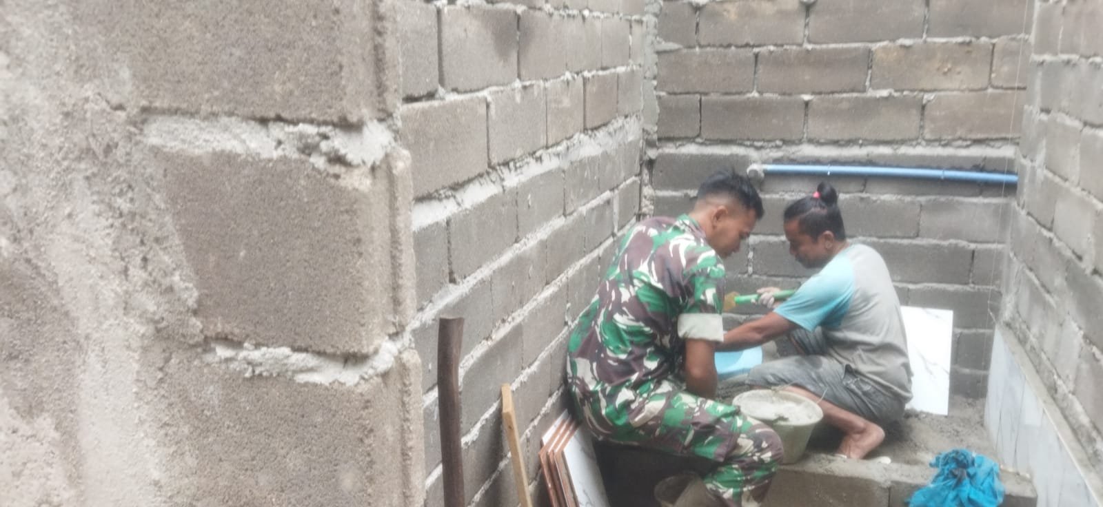 ACEH JAYA – Babinsa Koramil 03/Setia Bakti jajaran Kodim 0114/Aceh Jaya, Serda Zainal Aripin, melaksanakan kegiatan karya bakti dengan membantu pembangunan kamar mandi dan WC milik salah satu warga binaan di Desa Pante Kuyun, Kecamatan Setia Bakti, Kabupaten Aceh Jaya, Kamis (05/02/2026).