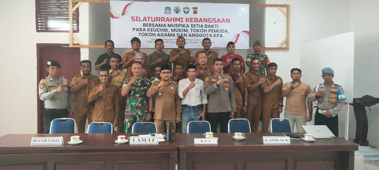 Hadir dalam kegiatan tersebut Camat Setia Bakti, Kapolsek Setia Bakti, Danramil 03/Setia Bakti, Kanit IK Polsek Setia Bakti, Babinsa Koramil 03/Setia Bakti, para keuchik, mukim, tokoh pemuda, anggota KPA Setia Bakti, serta personel Polsek dan Koramil. Kehadiran berbagai unsur ini menegaskan komitmen bersama dalam menjaga keamanan dan memperkuat kebersamaan di wilayah tersebut.