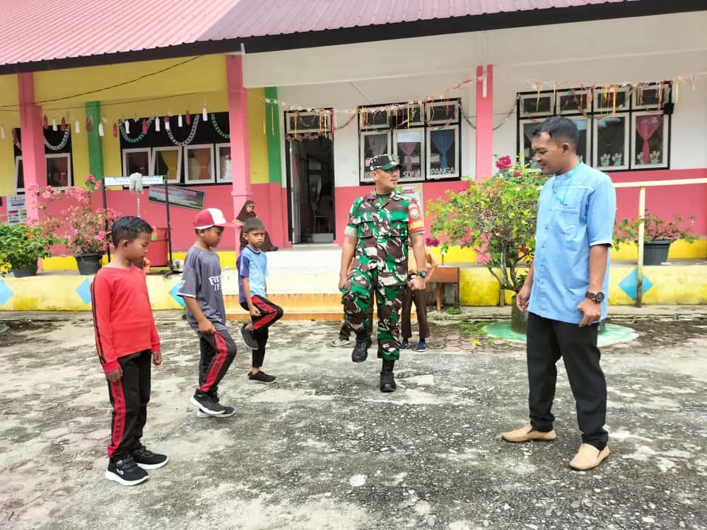 ACEH JAYA – Babinsa Koramil 05/Panga Kodim 0114/Aceh Jaya, Koptu Izrillah, memberikan pelatihan Peraturan Baris Berbaris (PBB) kepada para siswa Sekolah Dasar Negeri 1 Keude Panga, Kecamatan Panga, Sabtu (15/11/2025). Kegiatan ini bertujuan membentuk karakter siswa agar lebih disiplin, mandiri, serta memiliki sikap dasar yang baik dalam berbaris.