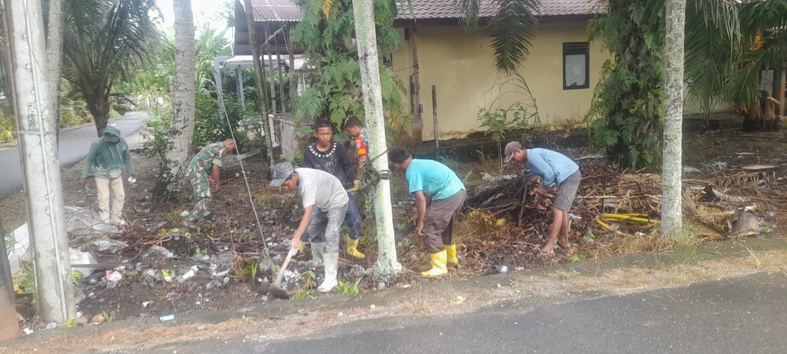 Karya bakti tersebut dipimpin oleh Sertu Pujianto dan Kopda Baihaki yang turut terjun langsung bersama warga membersihkan berbagai area di lingkungan desa. Sejak pagi hari, masyarakat tampak antusias mengikuti kegiatan gotong royong yang difokuskan pada pembersihan jalan desa, selokan, serta area lingkungan yang sering menjadi tempat penumpukan sampah.