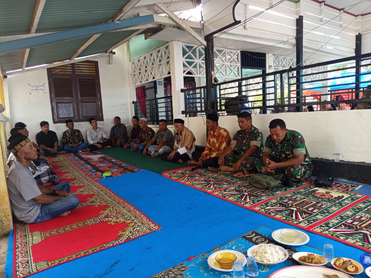 ACEH JAYA — Danposramil Pasi Raya Serka Z Tanjung bersama anggota serta personel Koramil 06/Teunom, Sertu Arief, menghadiri takziah hari ketujuh sekaligus doa bersama di rumah duka Almarhum KH Abu Syammah (Abon) di Desa Kubu, Kecamatan Teunom, Kabupaten Aceh Jaya, Selasa (09/12/2025).