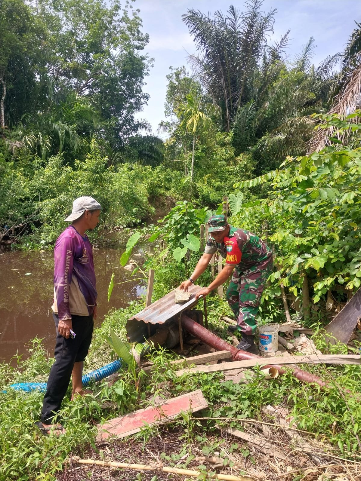 Babinsa Koramil 07/Johan Pahlawan Bantu Warga Desa Mengairi Sawah