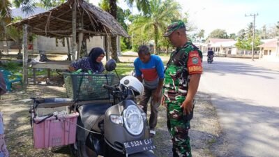 ACEH BARAT – Sertu Teguh Raharjo, Babinsa Koramil 07/Johan Pahlawan Kodim 0105/Aceh Barat, melaksanakan kegiatan komunikasi sosial (Komsos) bersama petugas Badan Penanggulangan Bencana Daerah (BPBD) Aceh Barat di Desa Seunebok. Kegiatan ini bertujuan untuk menjalin kedekatan dan keakraban antara Babinsa dengan petugas BPBD, Jumat (21/11/2025).