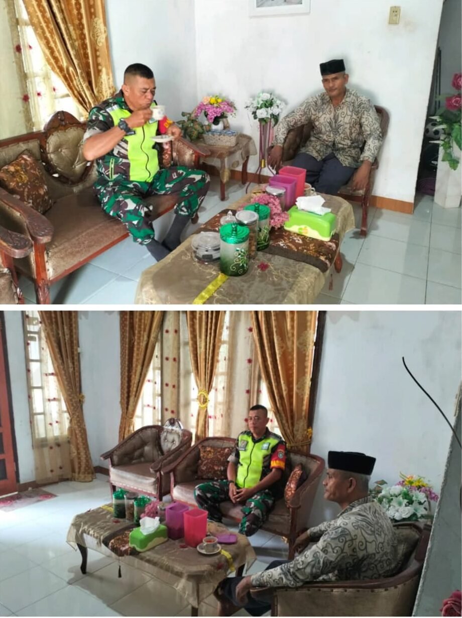 ACEH BARAT – Sertu Agustino, Babinsa Koramil 07/Johan Pahlawan Kodim 0105/Aceh Barat, melaksanakan kegiatan komunikasi sosial (komsos) bersama tokoh masyarakat di Desa Gampa, Senin (09/02/2026).