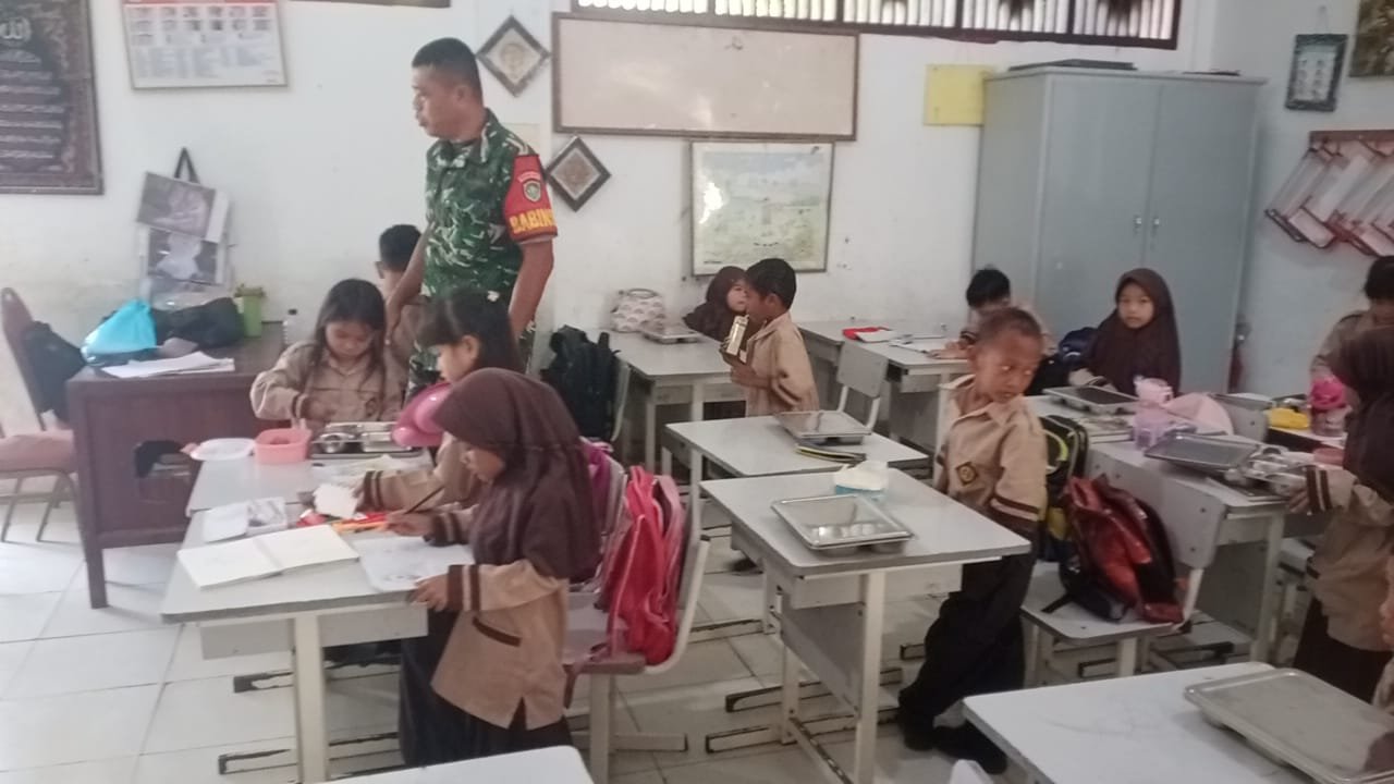 ACEH BARAT – Sertu Agustino, Babinsa Koramil 07/Johan Pahlawan Kodim 0105/Aceh Barat, melaksanakan pemantauan pendistribusian makan bergizi gratis bagi siswa-siswi Sekolah Dasar Negeri (SDN) 14 Meulaboh yang berlokasi di Jalan Manek Roo, Desa Ujung Baroh, Kecamatan Johan Pahlawan, Kabupaten Aceh Barat, Jumat (17/10/2025).