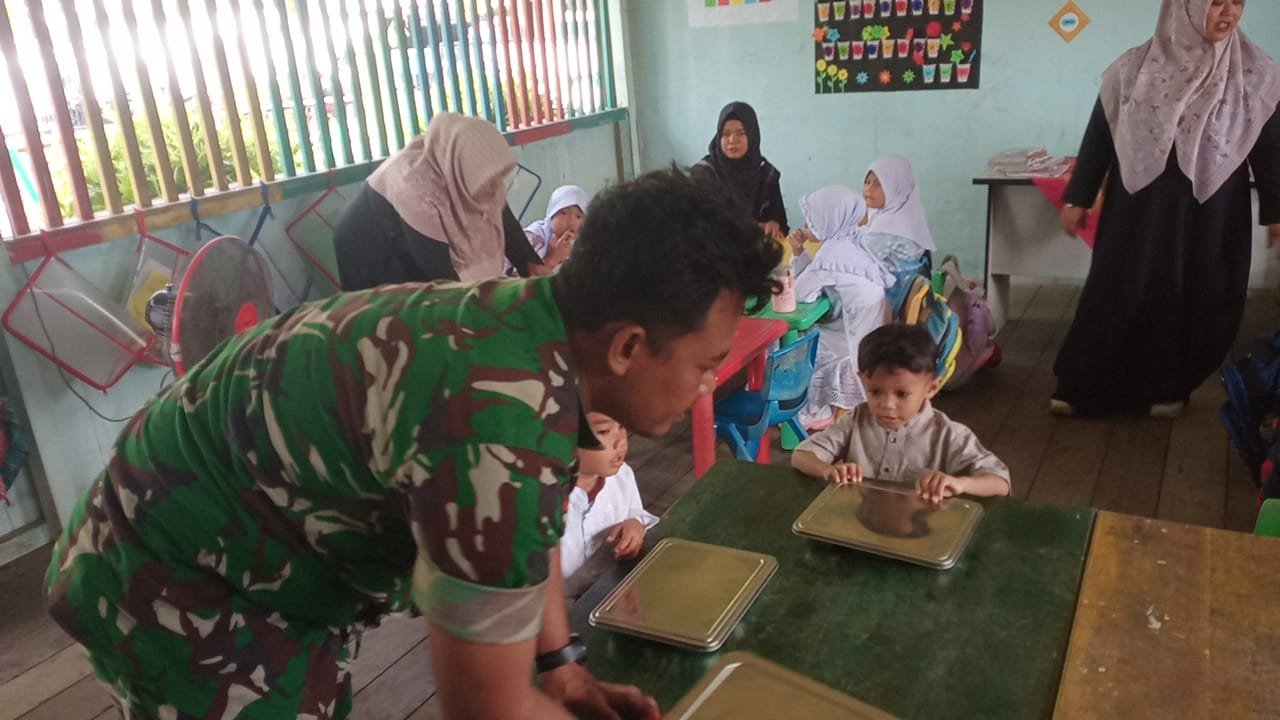ACEH BARAT – Sertu Eko Saputra, Babinsa Koramil 07/Johan Pahlawan Kodim 0105/Aceh Barat, melaksanakan kegiatan pemantauan pemberian makanan bergizi gratis di TK Insan Kamil, Jalan Terendam, Desa Rundeng, Sabtu (15/11/2025). Kegiatan ini dilakukan untuk memastikan program makanan bergizi gratis berjalan dengan baik dan memberikan manfaat maksimal bagi anak-anak.