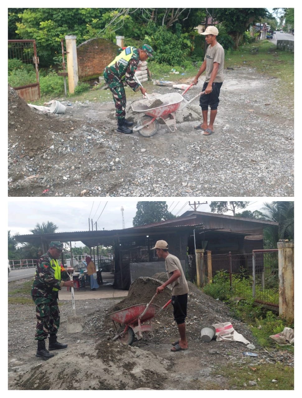 Koptu Fahrul terjun langsung memberikan tenaga dalam proses pengerjaan, khususnya pada pengadukan semen. Kehadiran Babinsa diharapkan dapat meringankan beban keluarga pemilik rumah sehingga pembangunan dapat berjalan lebih cepat dan lancar.