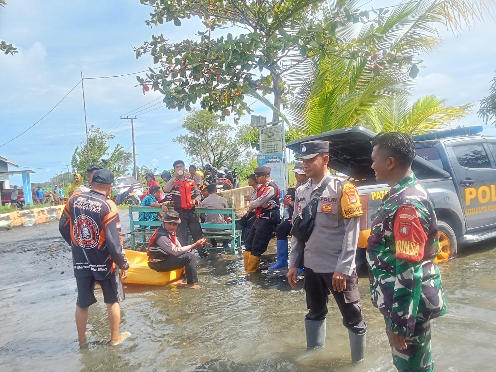 <p>Kegiatan ini dilaksanakan di tengah kondisi lingkungan yang masih tergenang air akibat banjir yang melanda beberapa hari terakhir. Aparat gabungan tampak sigap dan terorganisir, menggunakan kendaraan operasional dan perlengkapan darurat untuk menjangkau warga yang membutuhkan bantuan. Kehadiran mereka tidak hanya memberikan rasa aman, tetapi juga menunjukkan komitmen nyata dalam membantu masyarakat.</p>