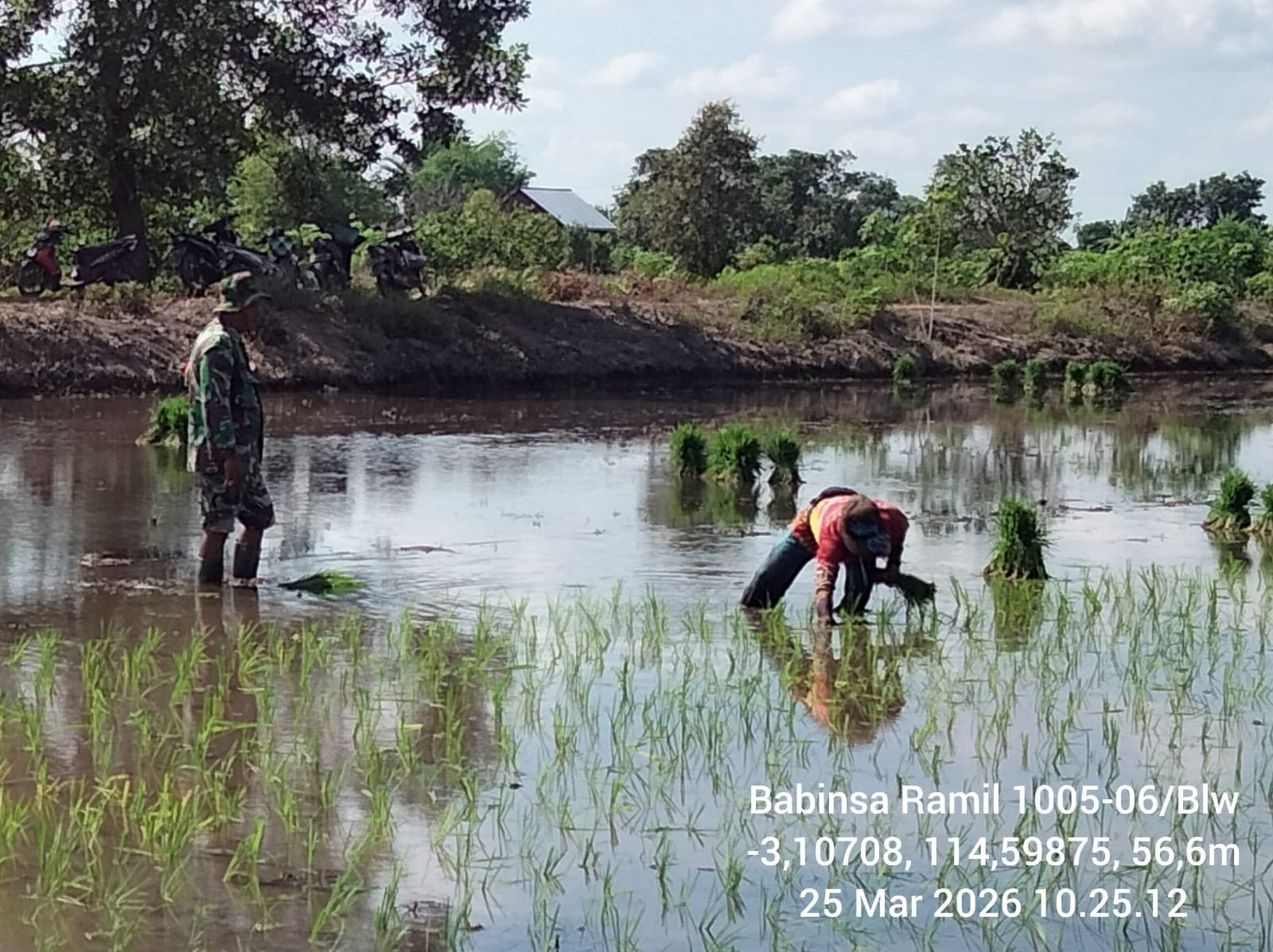 Barito Kuala – Babinsa Koramil 1005-06/Belawang, Pelda Wahyudi, melaksanakan kegiatan pendampingan Luas Tambah Tanam (LTT) di wilayah Kecamatan Belawang, Kabupaten Barito Kuala. Kegiatan ini dilakukan bersama para petani setempat di areal persawahan yang tengah memasuki musim tanam padi. pada Rabu (25/03/2026).