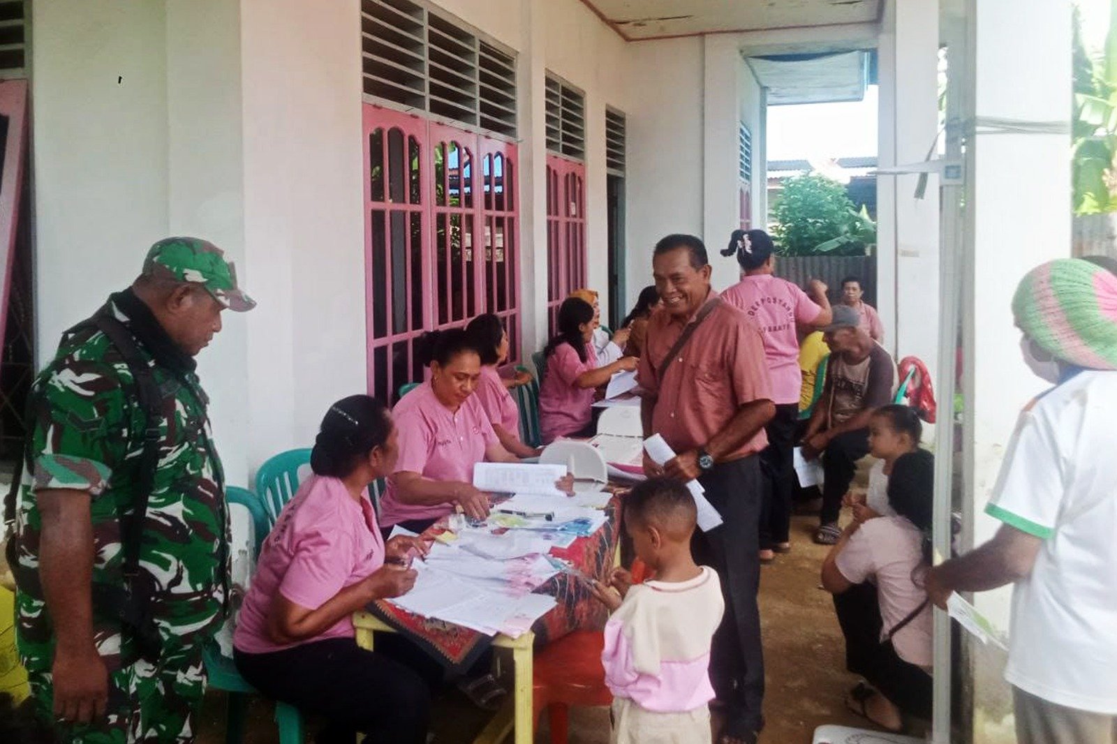 <p><strong>MERAUKE –</strong> Babinsa Koramil 1707-02/Merauke jajaran Kodim 1707/Merauke Sertu Emanuel terus menunjukkan kepeduliannya terhadap kesehatan masyarakat. Ia aktif mendampingi kegiatan pelayanan kesehatan di wilayah binaannya.</p>