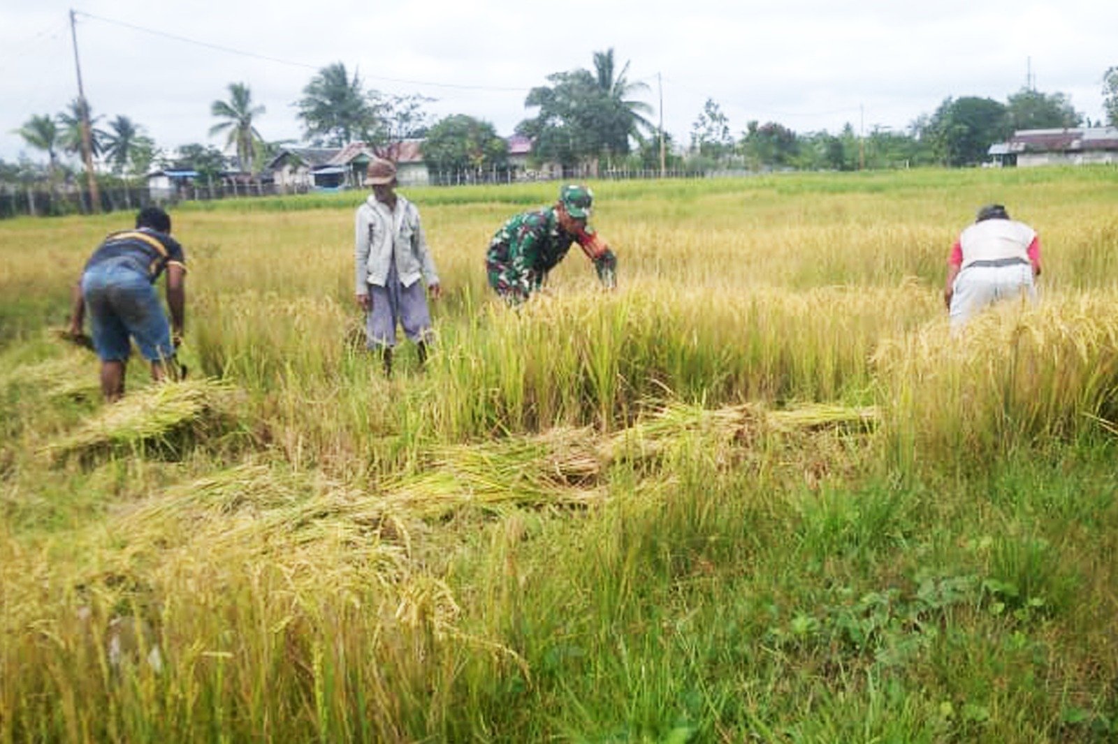 Merauke – Semangat kebersamaan antara TNI dan Masyarakat kembali terlihat nyata di Kampung Metaat Makmur, Distrik Elikobel, Kabupaten Merauke – Provinsi Papua Selatan. Pada Minggu (08/02/2026) pukul 08.00 WIT, Sertu Didik Wahyudi, Babinsa Koramil 1707-07/Elikobel Kodim 1707/Merauke, terjun langsung membantu warga memanen padi di lahan pertanian setempat.