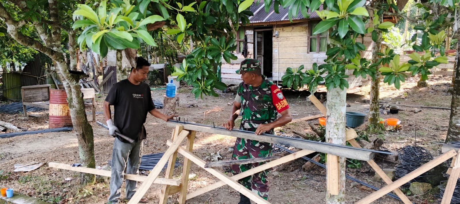 “Saya turun langsung ke lokasi untuk melihat aktivitas masyarakat yang sedang bekerja sebagai tukang bangunan. Dengan cara ini, kita bisa saling berkomunikasi dan mengetahui kondisi mereka secara langsung,” ujar Serda Hendra Yani.