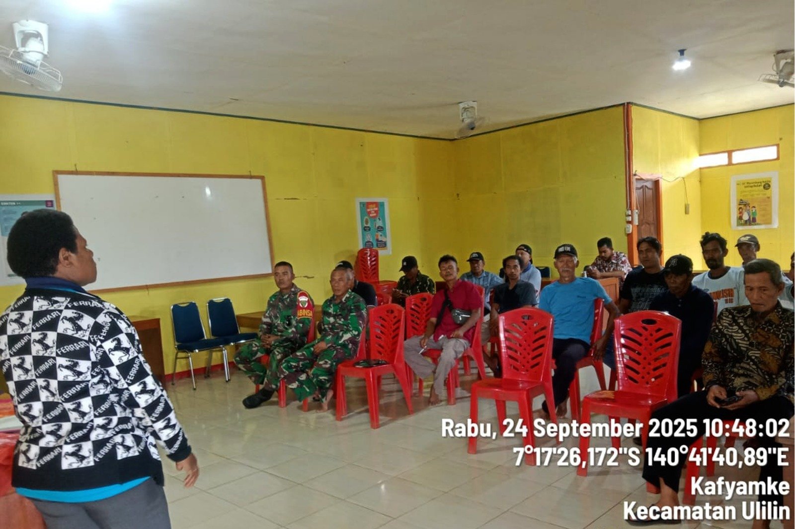 Setelah praktik lapangan selesai, kegiatan dilanjutkan dengan sesi evaluasi yang dipimpin oleh Ibu Yosinta dan bertempat di Balai Kampung Kafyamke. Dalam penutupan, Ibu Yowinta, selaku Penyuluh Pertanian Lapangan (PPL) Distrik Ulilin mewakili peserta, menyampaikan apresiasi kepada Babinsa Koramil Ulilin.