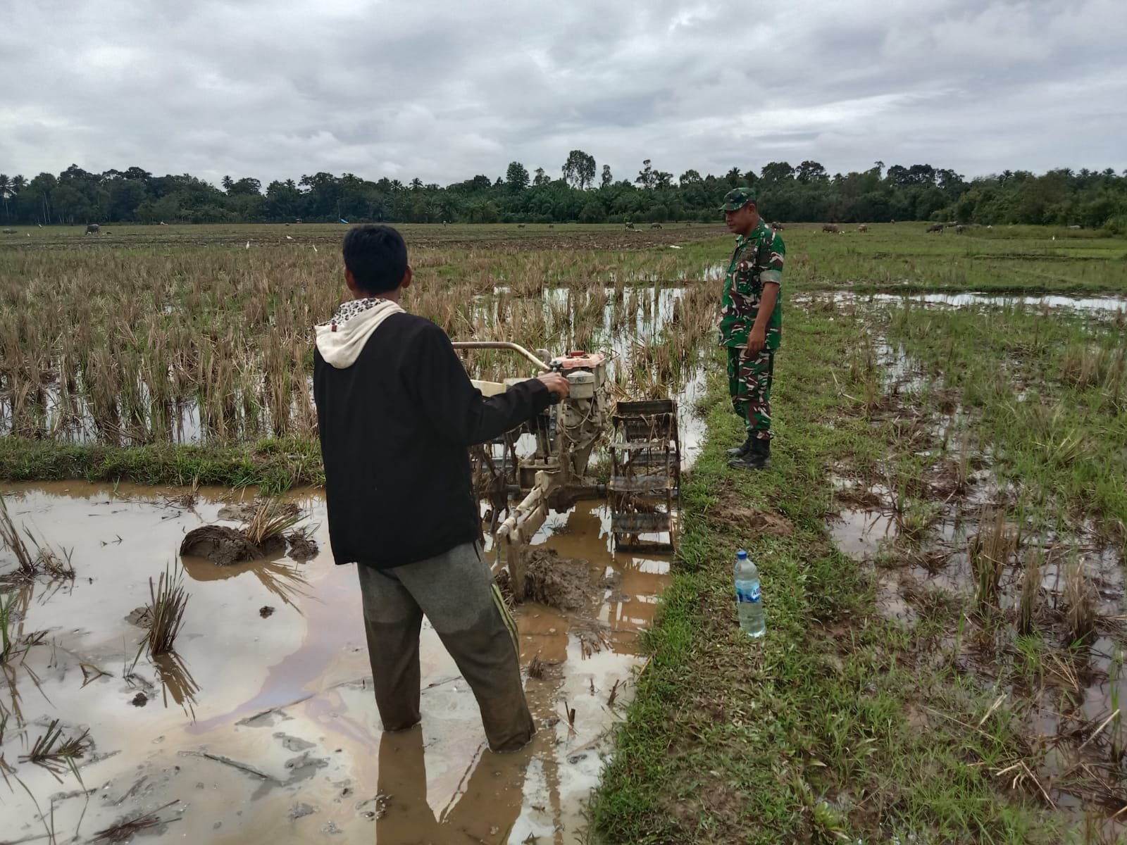 Selain itu, Serda Hendri juga memberikan arahan terkait teknik budidaya padi yang baik dan benar untuk meningkatkan kualitas serta kuantitas hasil panen. Pendampingan ini turut mencakup upaya menjaga ketersediaan air, terutama saat musim kering, dengan membantu pengoperasian pompa air agar sawah tetap mendapatkan suplai air yang memadai.