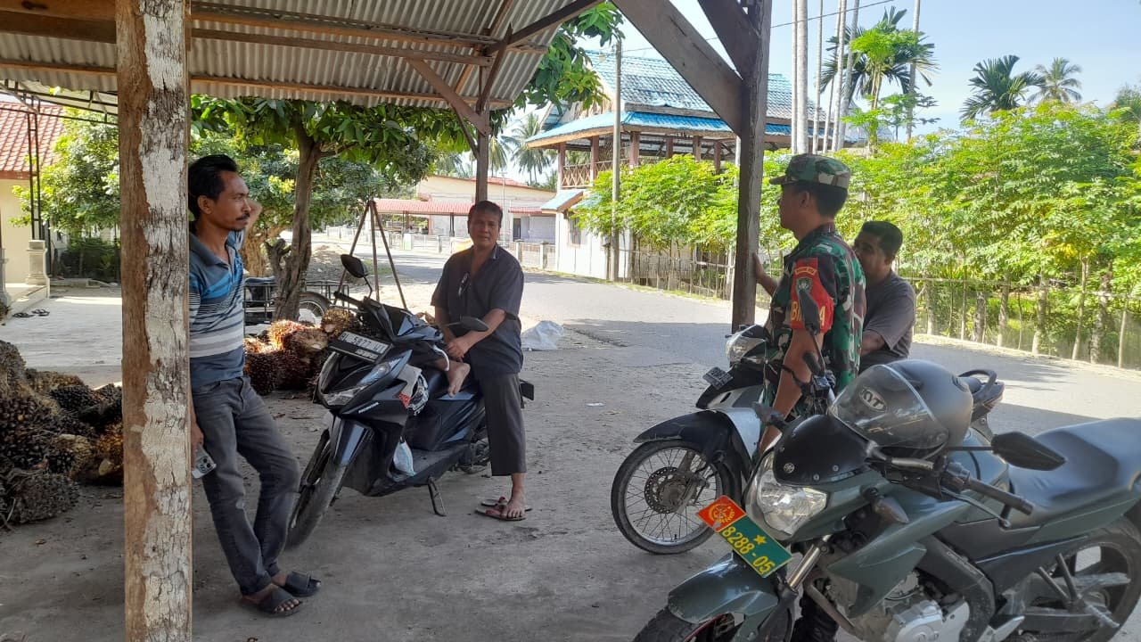 ACEH JAYA – Babinsa Koramil 06/Teunom jajaran Kodim 0114/Aceh Jaya, Kopka Ardika, melaksanakan kegiatan komunikasi sosial (komsos) bersama masyarakat di Desa Rambong Payong, Kecamatan Teunom, Kabupaten Aceh Jaya. Kehadiran Babinsa mendapat sambutan positif dari warga sebagai bentuk kepedulian TNI terhadap keamanan dan kelestarian lingkungan di wilayah binaan, Minggu (22/2/2026).