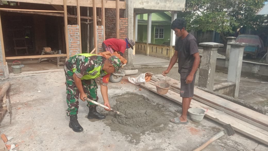 ACEH BARAT – Dalam rangka pembinaan teritorial (Binter) guna memberdayakan budaya gotong royong dalam kehidupan bermasyarakat, Babinsa Posramil 06/Bubon, Serda Hendri, melaksanakan karya bakti membantu masyarakat binaannya membangun rumah di Desa Alue Lhok, Kecamatan Bubon, Kabupaten Aceh Barat, Rabu (24/09/2025).