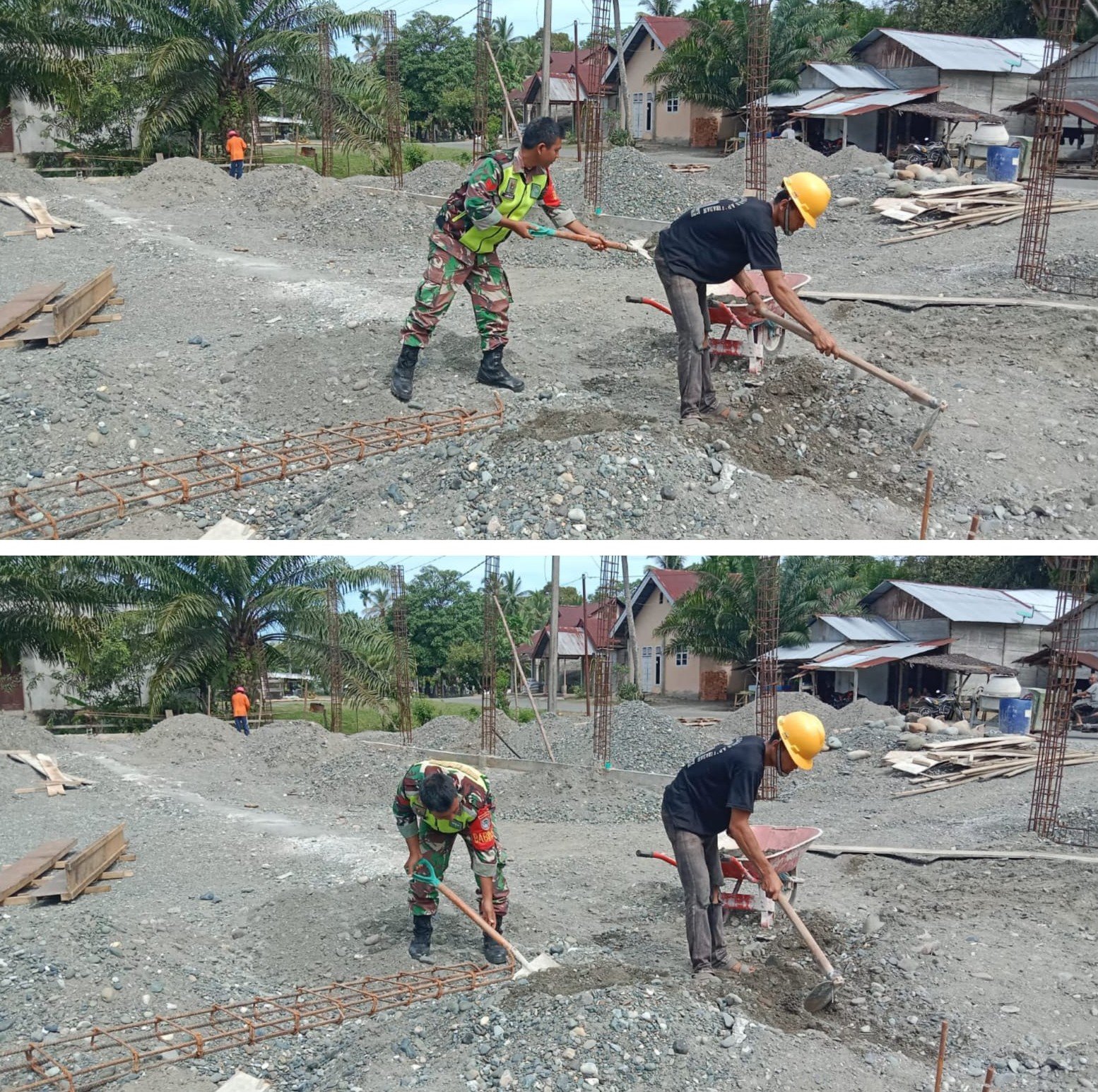 <p><strong>ACEH BARAT &#8211; </strong>Babinsa Posramil 06/Bubon, Kodim 0105/Aceh Barat, Kopka Usman kembali menunjukkan kepeduliannya kepada masyarakat melalui kegiatan karya bakti. Kali ini, ia bersama warga bergotong royong membantu mengaduk semen untuk pembuatan pondasi rumah warga yang berlokasi di Desa Kuala Pling, Kecamatan Bubon, Kabupaten Aceh Barat, Rabu (15/04/2026).</p>