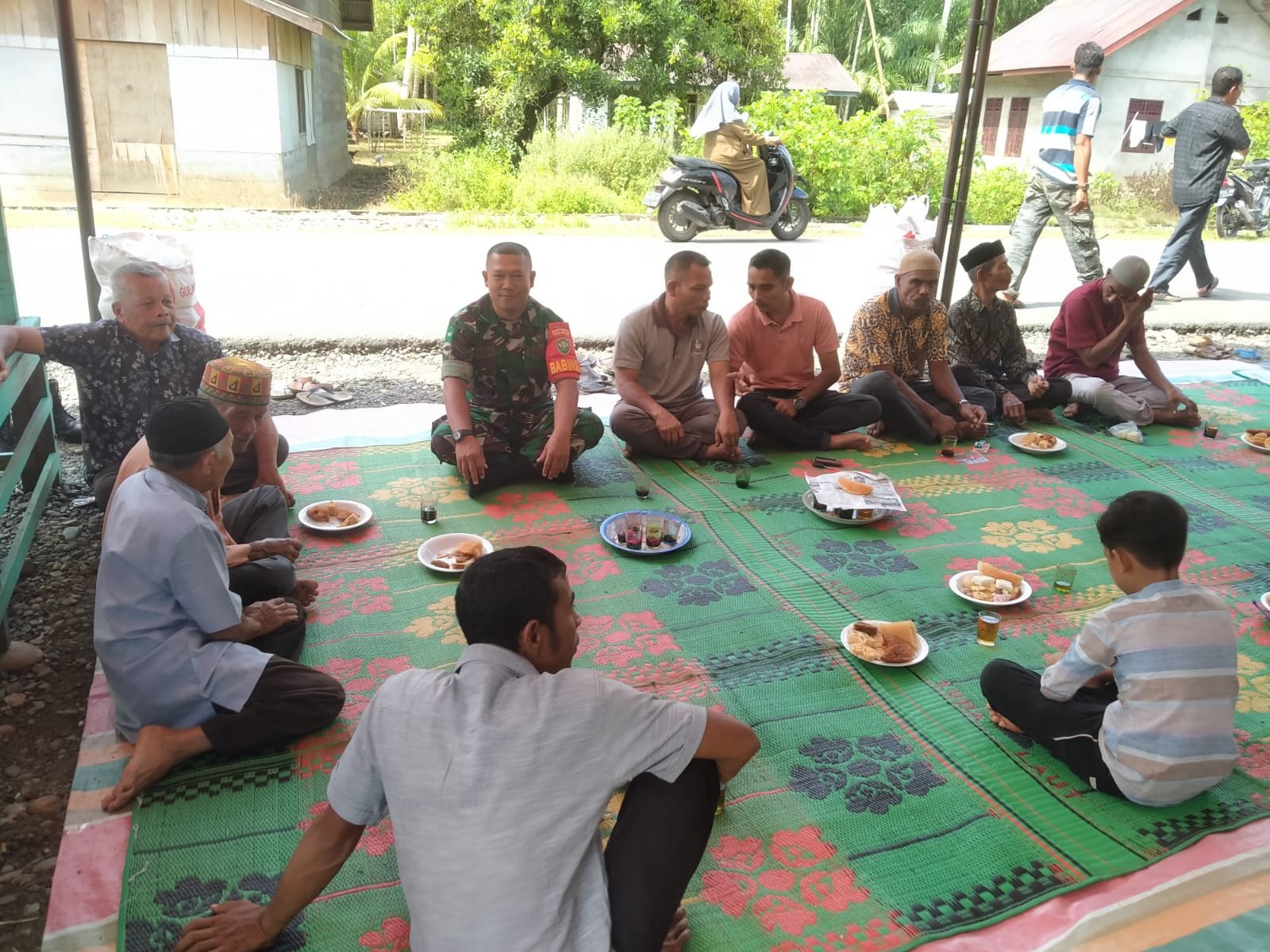 ACEH JAYA – Babinsa Posramil Pasie Raya Kodim 0114/Aceh Jaya, Sertu Syamsul, menghadiri kenduri di rumah almarhum Bapak Mukim di Desa Tuwie Kareung, Kecamatan Pasie Raya, Kabupaten Aceh Jaya Senin (06/10/2025), sekaligus melaksanakan komunikasi sosial (komsos) bersama warga setempat.