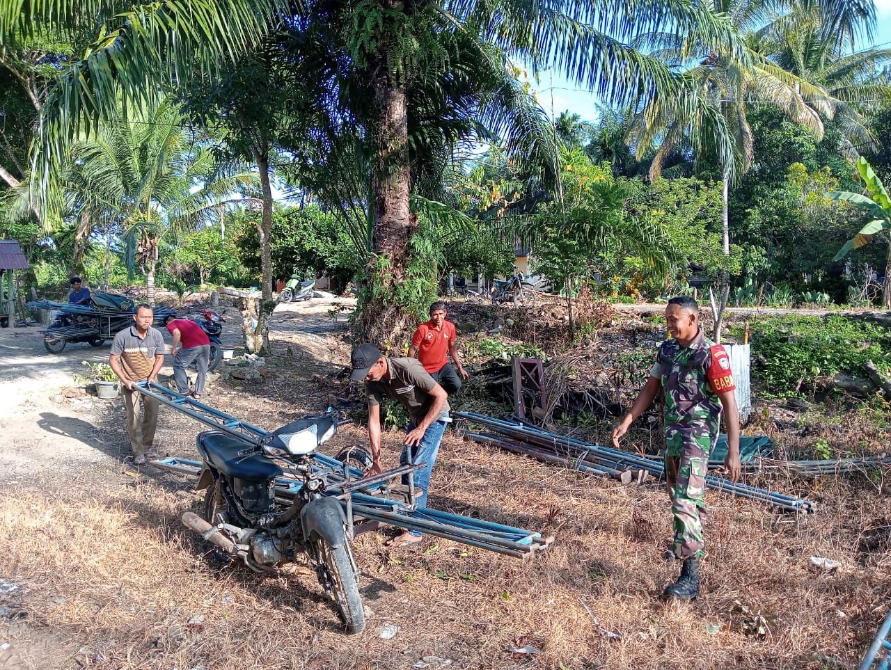ACEH JAYA – Dalam semangat kebersamaan dan kemanunggalan TNI dengan rakyat, Babinsa Koramil 02/Sampoiniet Kodim 0114/Aceh Jaya, Serda Iswadi, melaksanakan kegiatan karya bakti di Desa Ie Jeureungeh, Kecamatan Sampoiniet, Kabupaten Aceh Jaya, Minggu (20/07). Kegiatan ini difokuskan pada bantuan pemasangan tenda untuk acara hajatan pernikahan anak dari Bapak Sayuti. Selain membantu secara fisik, Serda Iswadi juga memanfaatkan momen tersebut untuk mempererat tali silaturahmi dengan masyarakat setempat.
