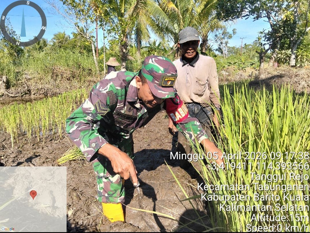<p><strong>BARITO KUALA –</strong> Dalam upaya mendukung ketahanan pangan nasional dan meningkatkan produksi pertanian, Babinsa Koramil 1005-11/Tabunganen, Sertu Mulyadi, melaksanakan kegiatan pendampingan Program Luas Tambah Tanam (LTT) di Desa Tanggul Rejo, Kecamatan Tabunganen, Kabupaten Barito Kuala, pada Minggu (5/4/2026).<br><br>Kegiatan ini merupakan wujud nyata kepedulian TNI khususnya jajaran Kodim 1005/Marabahan melalui Koramil setempat, dalam membantu masyarakat petani memperluas areal tanam serta memastikan proses budidaya berjalan dengan baik dan optimal.<br><br>Sertu Mulyadi saat berada di lokasi kegiatan menyampaikan bahwa pendampingan ini dilakukan secara berkelanjutan untuk memberikan arahan teknis kepada petani, mulai dari pengolahan lahan, penanaman, hingga perawatan tanaman. Menurutnya, keberhasilan program LTT sangat bergantung pada sinergi antara aparat dan masyarakat, serta penerapan teknik pertanian yang tepat.<br><br>&#8221;Kami hadir di sini tidak hanya sebagai pengawas, tetapi juga mitra bagi para petani. Melalui pendampingan ini, kami berharap petani dapat memahami cara-cara bertani yang lebih efisien dan produktif, sehingga target penambahan luas tanam dapat tercapai dan hasil panen pun meningkat,&#8221; ujar Sertu Mulyadi.<br><br>Ia juga menambahkan bahwa program Luas Tambah Tanam ini memiliki peran strategis dalam menjaga ketersediaan pangan di daerah, sekaligus meningkatkan kesejahteraan ekonomi para petani. Oleh karena itu, pihaknya akan terus berkomitmen untuk hadir dan memberikan dukungan penuh di tengah-tengah masyarakat.<br><br>&#8221;Kami mengajak seluruh petani untuk terus bersemangat dan memanfaatkan lahan yang ada sebaik mungkin. Dengan kerja keras dan kerjasama yang baik, insya Allah hasilnya akan memuaskan dan bermanfaat bagi kita semua,&#8221; tambahnya.<br><br>Sementara itu, para petani di Desa Tanggul Rejo menyampaikan rasa terima kasihnya atas perhatian dan bantuan yang diberikan oleh Babinsa. Kehadiran aparat di lapangan dinilai sangat membantu, terutama dalam memberikan motivasi dan solusi atas berbagai kendala yang dihadapi selama proses bertani.<br><br>Kegiatan pendampingan ini diharapkan dapat terus berjalan secara rutin, sehingga target program pemerintah dalam hal peningkatan produksi pangan dapat terwujud dengan sukses, serta memberikan dampak positif yang nyata bagi kemajuan sektor pertanian di Kabupaten Barito Kuala khususnya, dan Indonesia pada umumnya.(1005).<br></p>