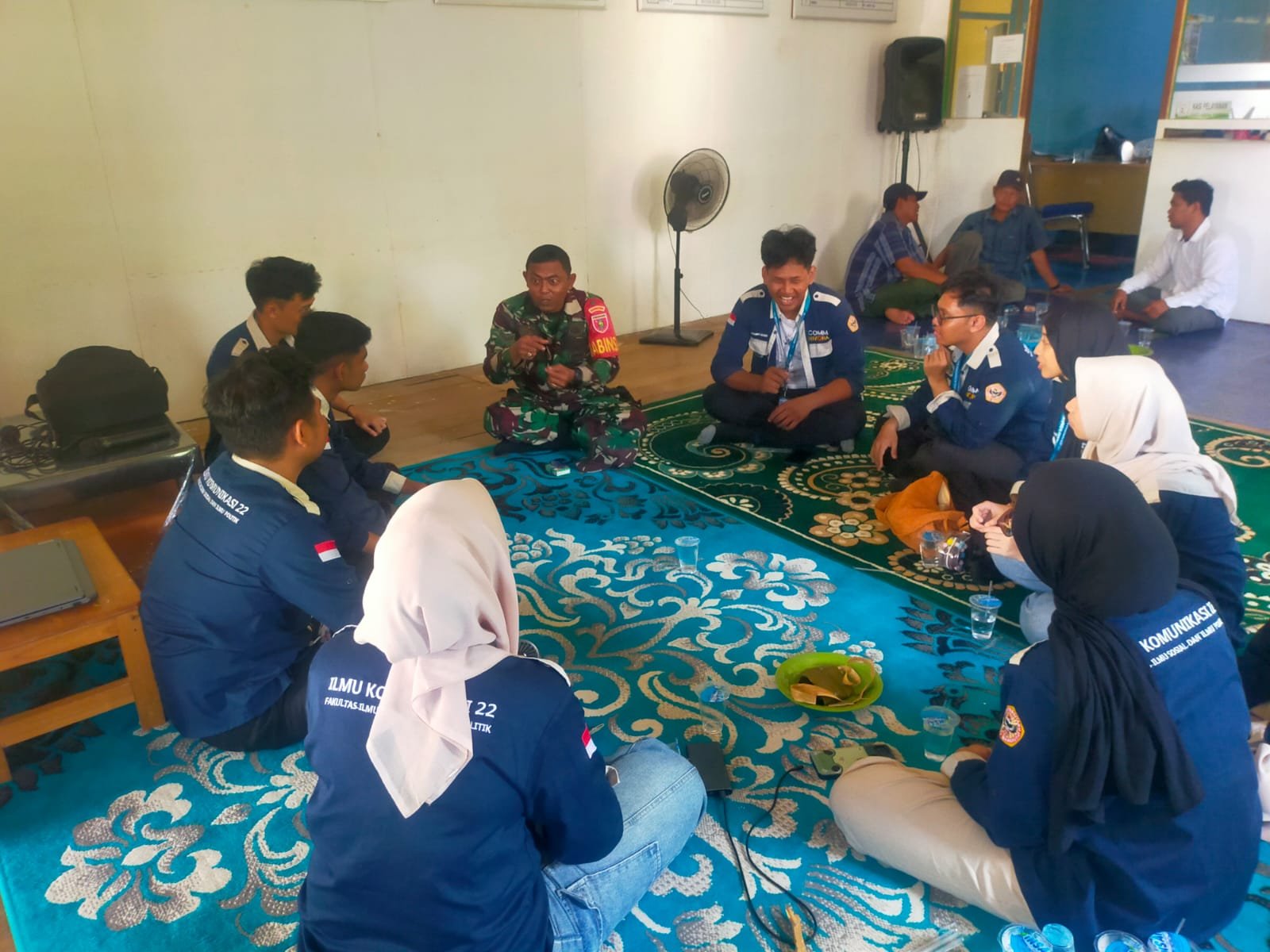 Suasana pertemuan berlangsung hangat, ditandai dengan diskusi terbuka antara Babinsa, mahasiswa, dan warga. Para peserta duduk bersama dalam lingkaran, membicarakan berbagai hal mulai dari peran pemuda dalam menjaga stabilitas sosial hingga pentingnya komunikasi yang efektif antara aparat dan masyarakat.
