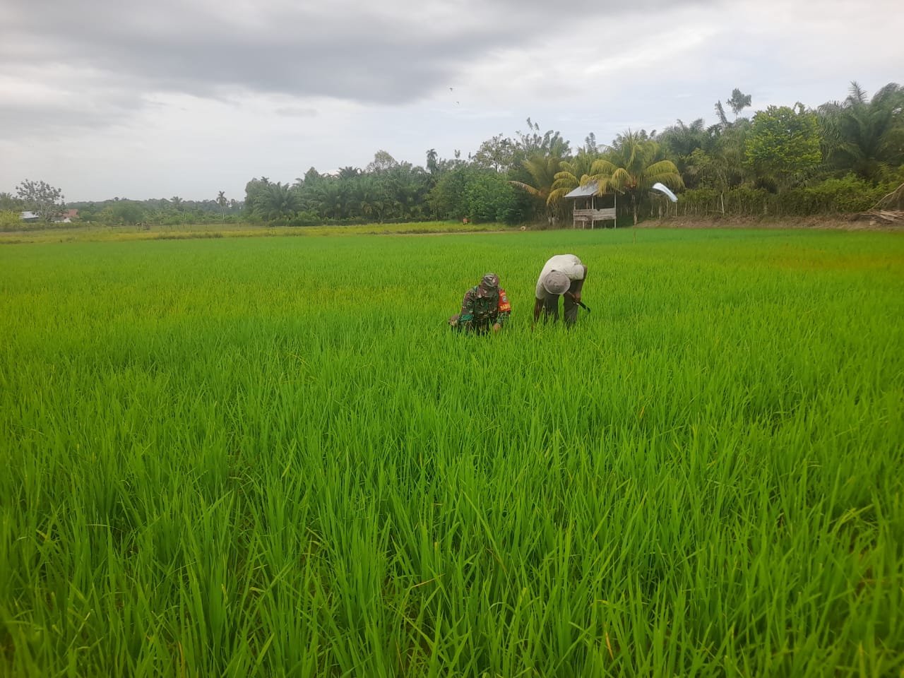 Kegiatan tersebut dilakukan di lahan persawahan milik anggota Kelompok Tani Meuraksa Jaya dengan luas sekitar seperempat hektare dan usia tanam padi mencapai 40 hari. Babinsa turun langsung ke sawah bersama petani untuk membersihkan gulma yang dapat menghambat pertumbuhan tanaman padi.
