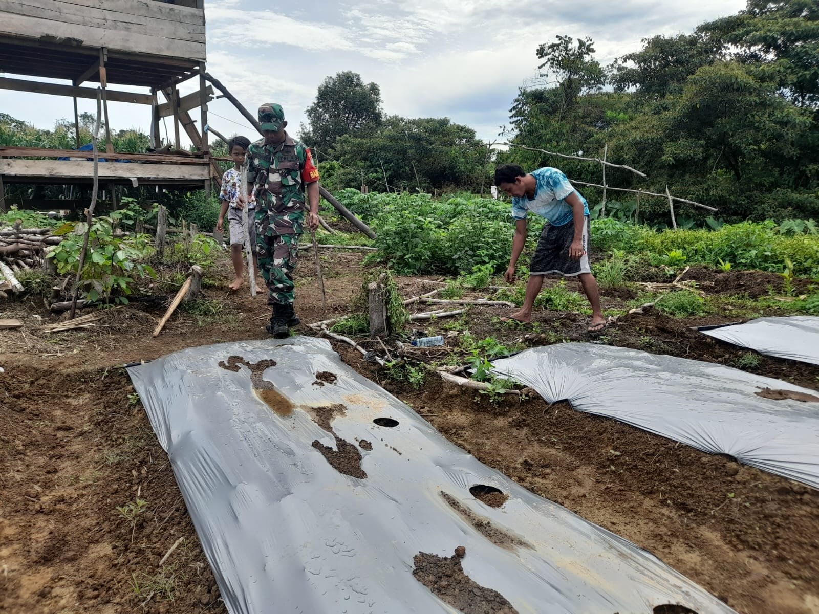 Babinsa Teunom Bantu Warga Siapkan Lahan Tanam Cabai di Seumira