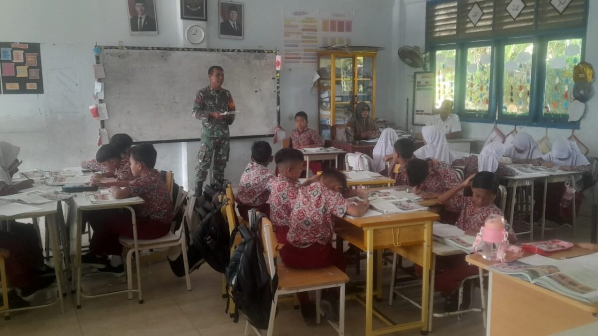 ACEH JAYA – Suasana belajar di SDN 4 Teunom, Kecamatan Teunom, Kabupaten Aceh Jaya, pada Rabu (29/4/2026) terlihat lebih hidup dari biasanya. Di tengah aktivitas sekolah, para siswa dan siswi mendapatkan pembelajaran tambahan yang berbeda, yakni materi Wawasan Kebangsaan (Wasbang) yang disampaikan langsung oleh anggota Koramil 06/Teunom dan Posramil Pasie Raya Kodim 0114/Aceh Jaya, Sertu Pujianto dan Kopda Baihaqi.